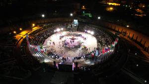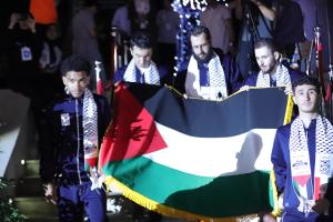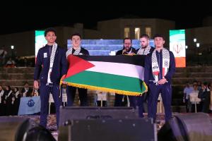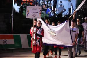 این مراسم با سرودهای حماسی در وصف ایران آغاز شد و همچنین اجرای ورزش باستانی و روشن شدن مشعل المپیاد از دیگر برنامه های این مراسم بود.
